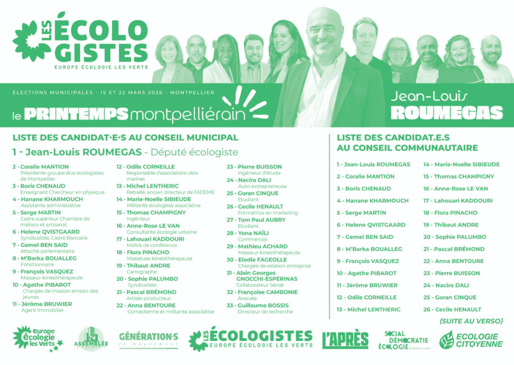 Le Printemps Montpelliérain est une liste de rassemblement écologiste, social et citoyen dont la tête de liste est Jean-Louis Roumégas pour les élections municipales des 15 et 22 mars 2026.